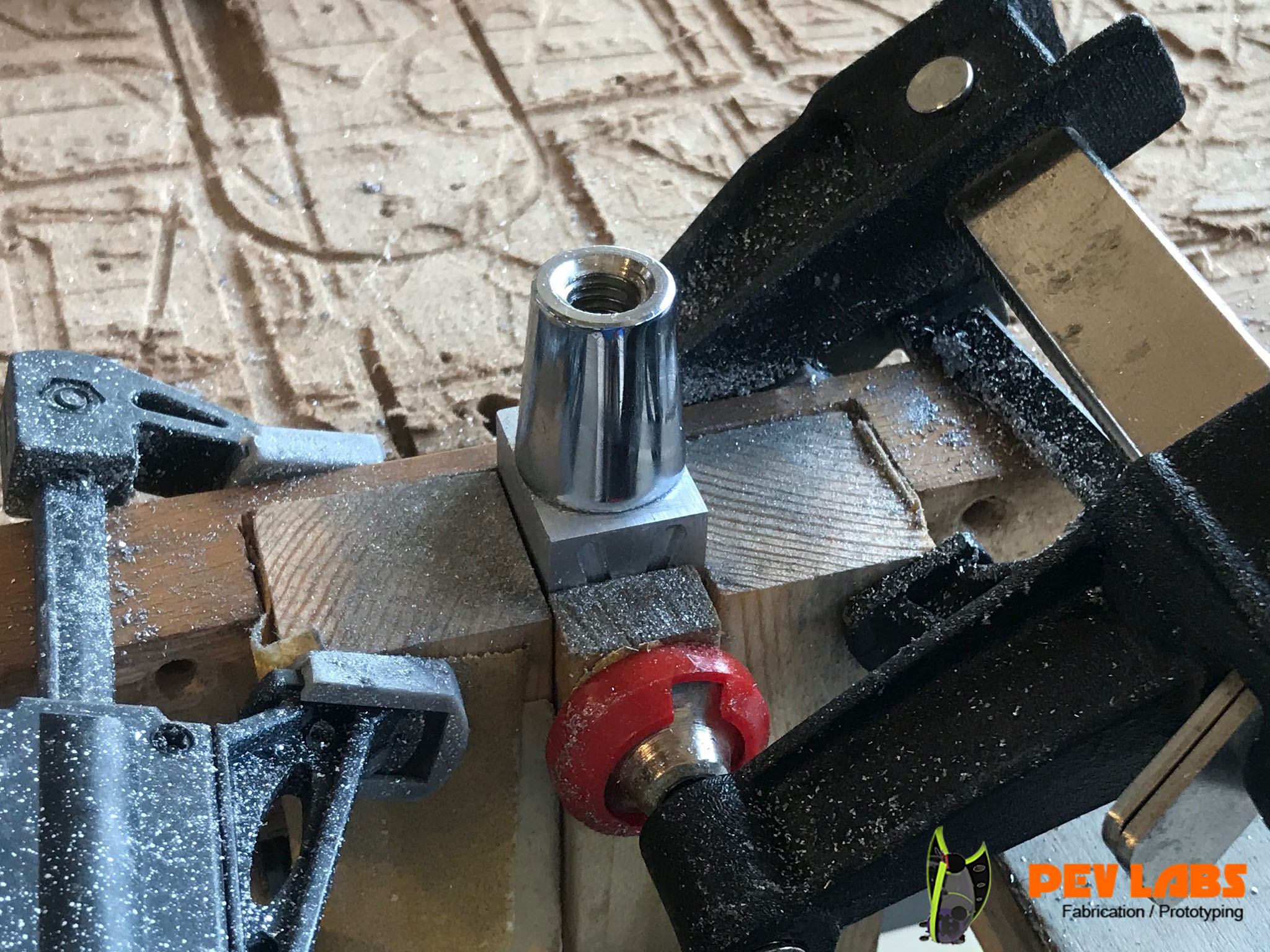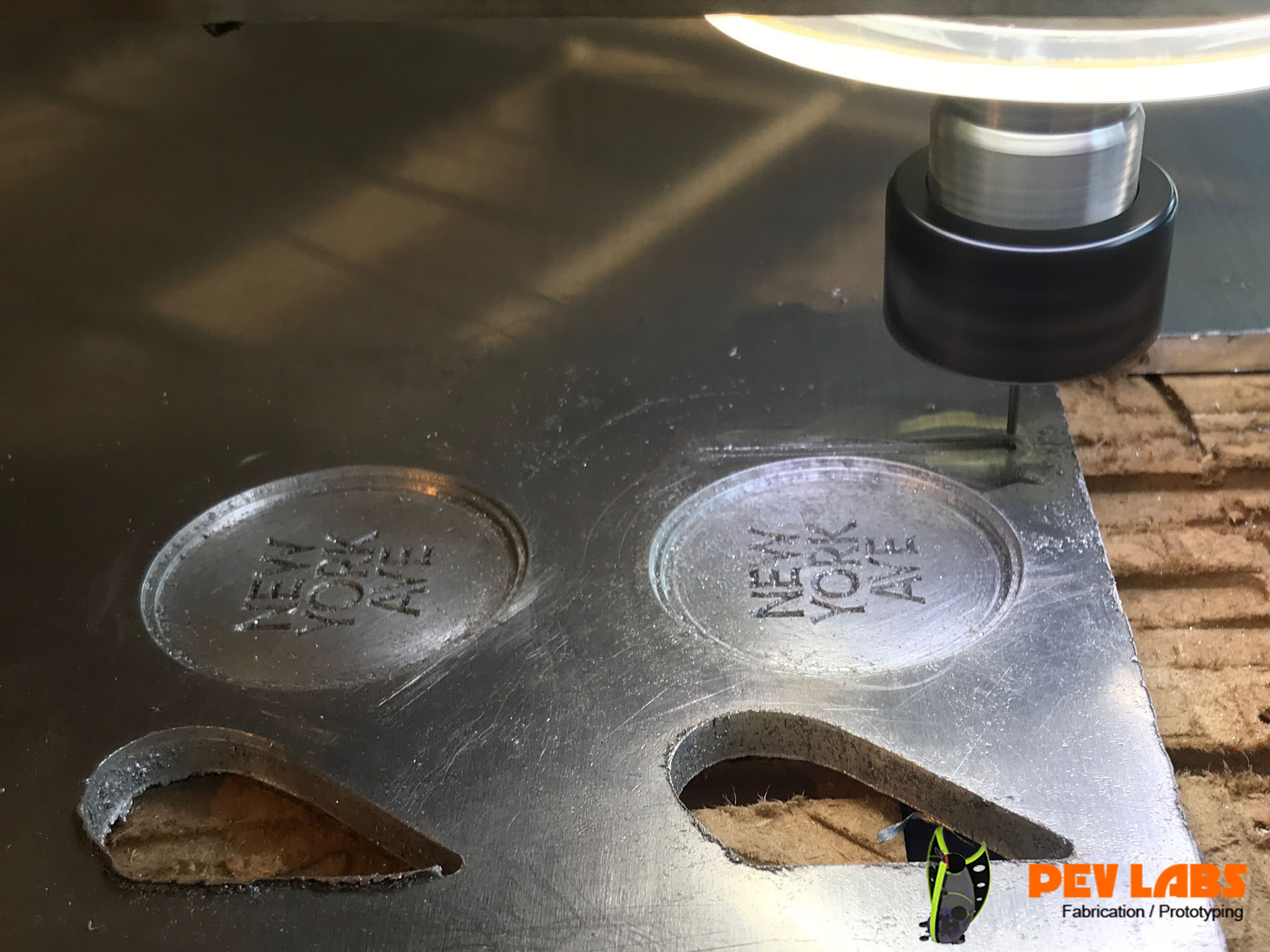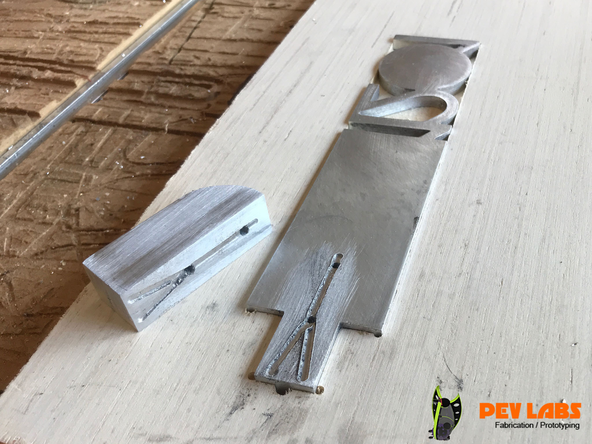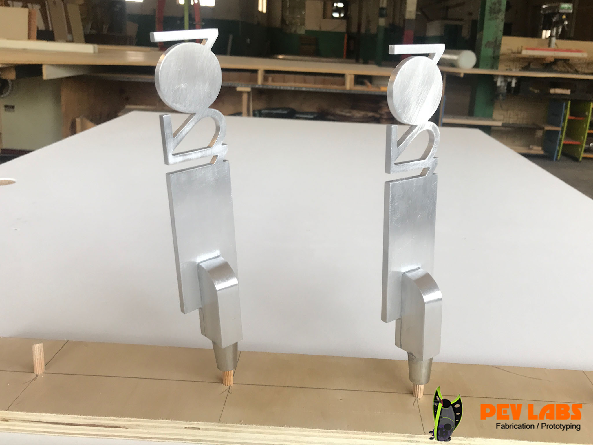 All aluminum metal tap handles produced from 0.25" aluminum plate with steel chrome ferrules. These are for an office kombucha dispenser at 1201 New York Avenue Washington DC. The beginning stages of the industrial design for this project was handled by the media agency who hired use and laid out as a vector file in Adobe Illustrator. For us the project required exporting the vector as a DXF (or SVG) file then import into Fusion 360 CAD CAM software. Within fusion we extrude the 2D file into a 3D model. We add fillets for rounding sharp edges along with the various depths needed for this particular design. We post our models live for clients to view and for them to share with their clients. The live view component of Fusion (See below) allows for the item to be spun around 360 degrees to expose all facets for inspections. Also supports zooming in for finer detail and exploding the model into various parts. Once the model is approve we provide photorealist renderings and begin production. The same model the client views is used to produce the CAM tool paths needed to drive the computer numeric controlled machinery. In this case it was a gantry style CNC machine which we used for CNC milling of aluminum.