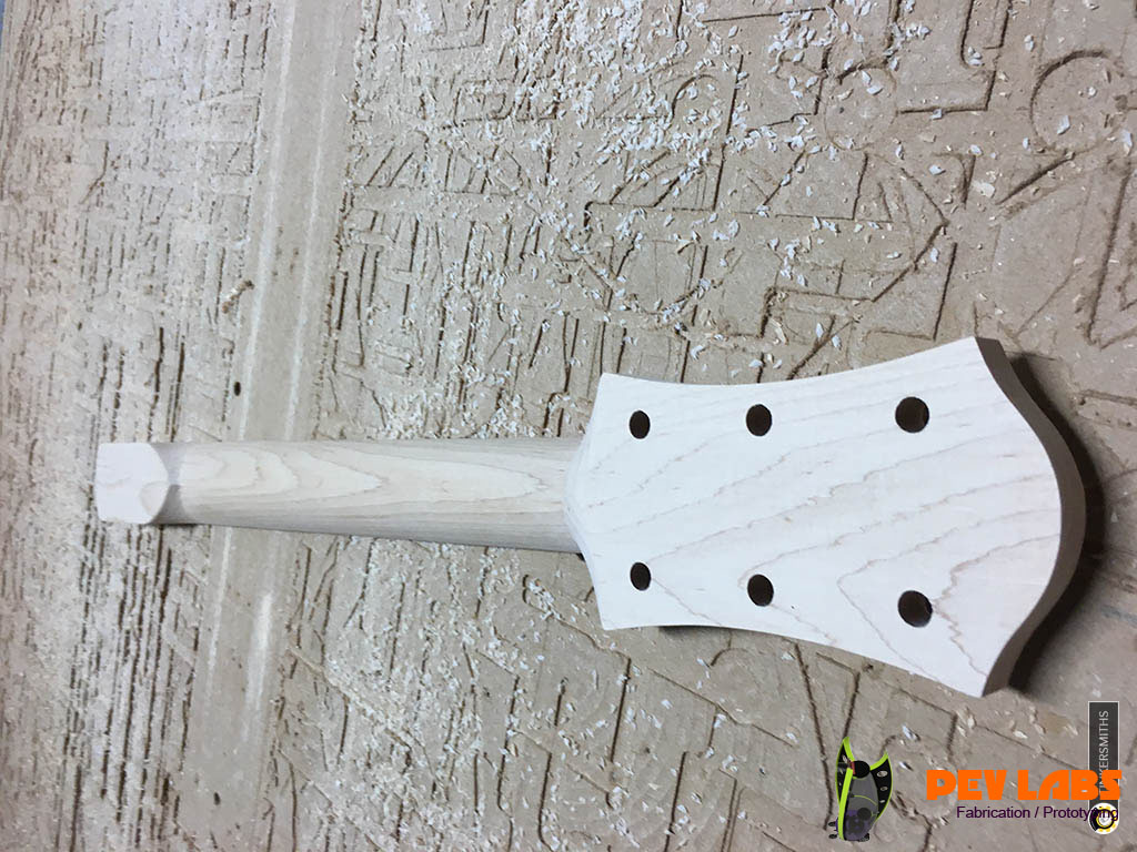 We build design and build electric guitars and purely electronic musical instruments, for fun and client requests. Repairs are also a possibility depending on needs but our focus is on making. We made a few guitars from scratch including our own necks and fretboards. We love neck though construction, though its more cost effected to purchase pre-made necks. Our CNC machines are awesome for getting the fret bar spacing fairly precise when taking this on. We also make electric guitars per your specifications or designs. Milling custom bespoke guitar bodies are fairly straight forward. Information is readily available for lying out various pickups, bridges, tremolos and neck pockets. Also comfortable with Floyd Rose or other modern Tremelo CNC pocketing. Visit our electronics and circuit design page if interested in what goes on beyond our tactile skills. If you are a musical instrument maker and would like parts milled please reach out.